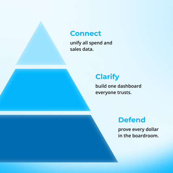 - Audit your reporting stack: Find the gaps where spend and sales don’t connect.